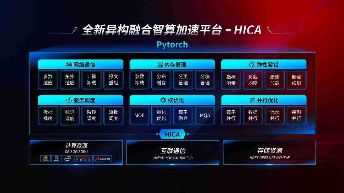 通过自研的服务层、、、中间适配层、、、、以及调度编排算法,,采用数据并行、、、、模型并行等多种并行方式,,,,把并行计算任务进行有效的分解,,,,使其分别由相应的软件栈和算力资源来承接。。。当GPU资源变化,,,,HICA可以实时动态调度计算子任务并调整模型拓扑和架构,,,,以充分聚合各种算力资源。。。。
